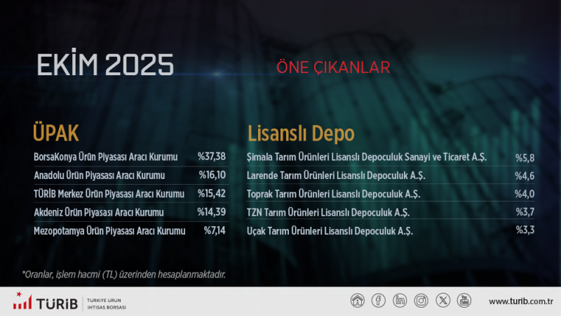 Türib piyasaları Ekim Ayı verileri üyelerimizin bilgisine sunulmuştur.
