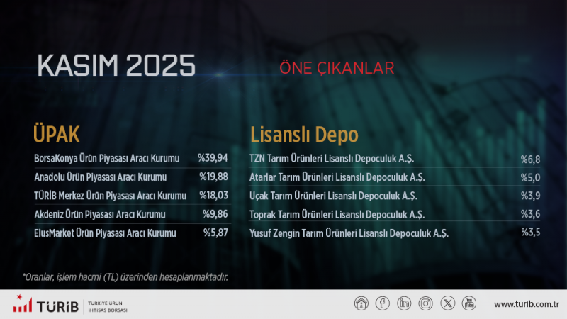 Türib piyasaları Kasım Ayı verileri üyelerimizin bilgisine sunulmuştur.