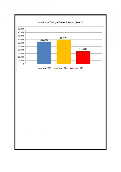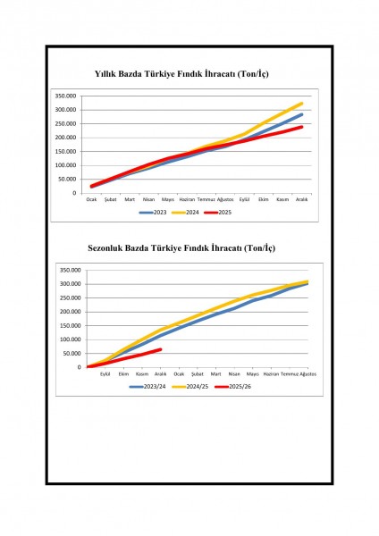 2025-26 ihracat sezonunun ilk dört ayını teşkil eden 01 Eylül-31 Aralık 2025 döneminde ve 2025 yılı yıllık bazda gerçekleşen Türkiye fındık ihracatına ilişkin bilgiler, son 2 sezon ile karşılaştırmalı olarak üyelerimizin bilgisine sunulmuştur.